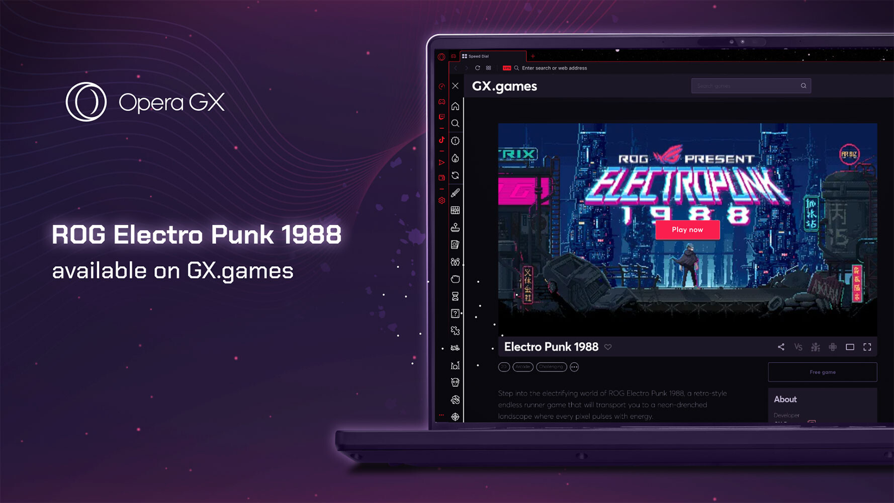ROG products have a consistent aesthetic that customers can now extend with the Opera GX ROG Edition browser. Wallpapers, background music, sound clips, and a ROG Electro Punk game are available in this new version of Opera GX, as well as an Aura Sync integration, enabling users to build unique light effects and animations that adapt in real-time to browser content. Light effects may even be used as notifications for when users receive messages, complete a download, or open a tab.