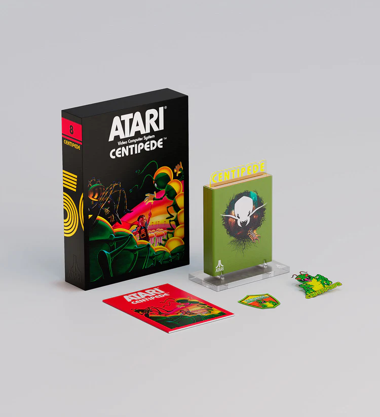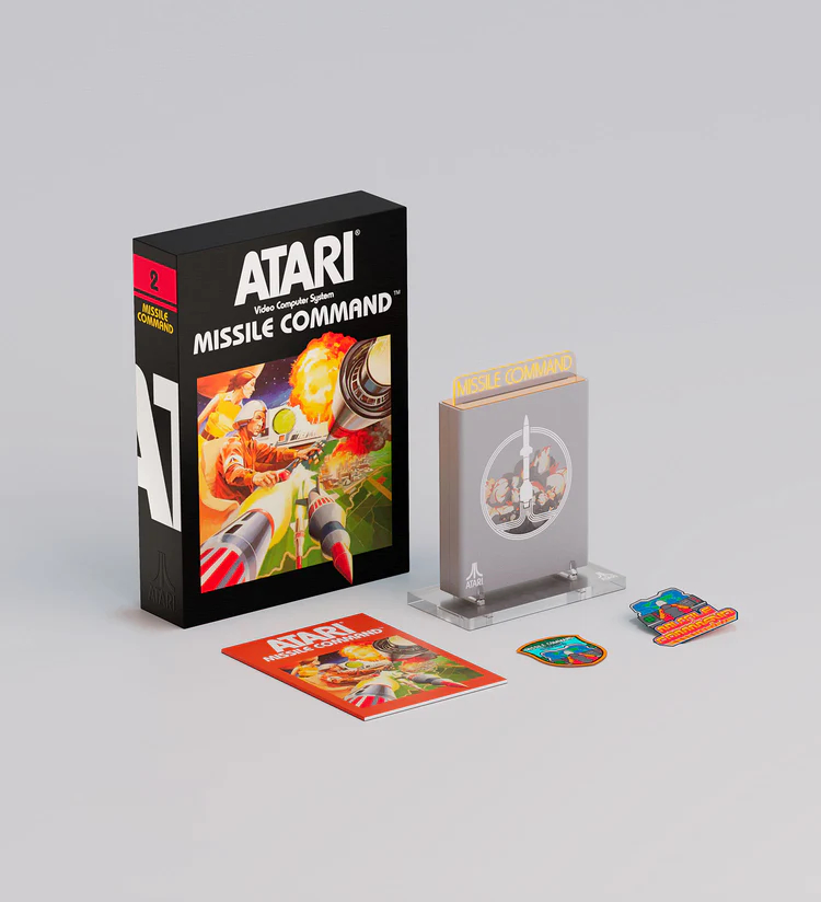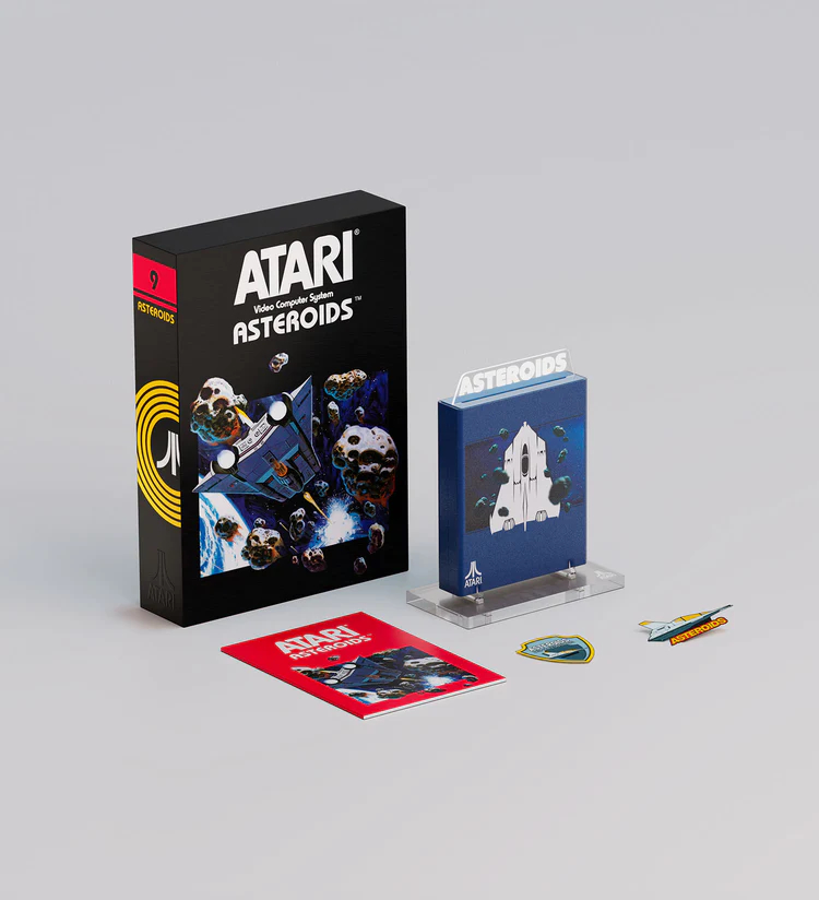 Limited to 100 units, the Atari 50th anniversary box set includes ten games: Adventure, Missile Command, Warlords, Super Breakout, Crystal Castles, Haunted House, Yars' Revenge, Centipede, Asteroids, Gravitar. Each of these comes with a cartridge (works with original Atari 2600 consoles) sealed in a custom-made box, a cardstock poster, an extended instructional manual, a hard enamel pin, a polyester blend, a twill-woven embroidered patch, a certificate of authenticity and a digital copy of the game for the Atari VCS.