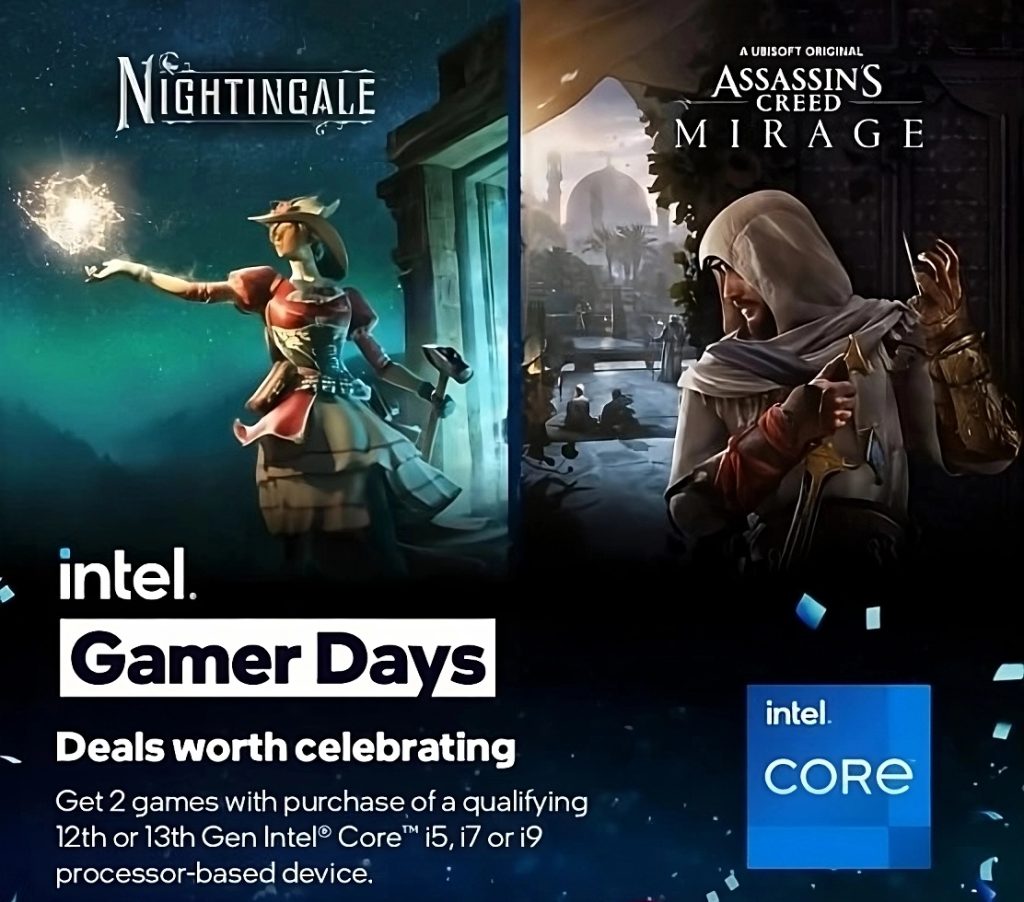 As part of Intel Gamer Days, the company has announced its latest hardware/game bundle. Soon, those picking up an Intel 12th or 13th Gen Core series processor, or an Intel Arc GPU, will be able to claim two free games, including Ubisoft's upcoming Assassin's Creed Mirage.