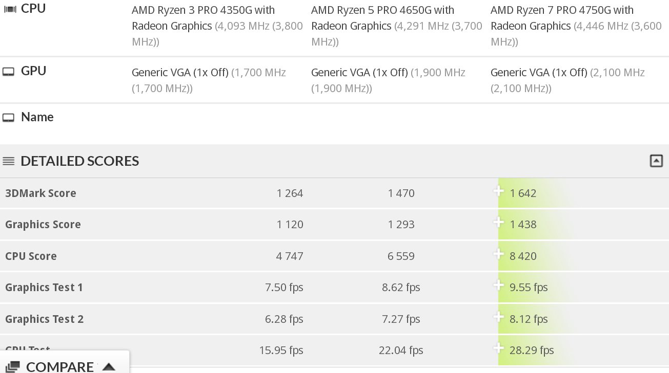 AMD Renoir Pro APUs spotted in the 3DMark database have a different naming scheme to what we expected. Based on the information from these listings, the Ryzen 7 Pro 4700G will be named Ryzen 7 Pro 4750G, the Ryzen 5 4400G will be called the Ryzen 5 Pro 4650G, and the Ryzen 3 Pro 4200G will be the Ryzen 3 4350G.