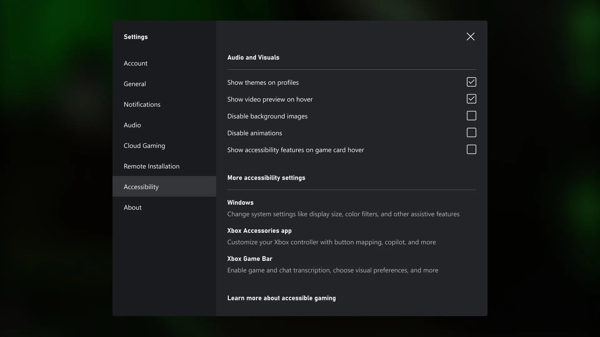 Accessibility settings have also received attention in this update. A centralised location has been introduced, allowing you to customise various accessibility settings such as animations, background images, and the ability to browse for games based on accessibility features. Additionally, you can keep your friends list, chat, and party windows visible in-game.