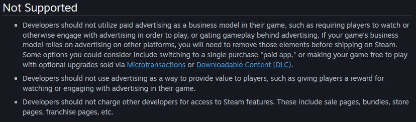 As reported by GamingOnLinux, Valve's updated guidelines explicitly state that “developers should not utilize paid advertising as a business model in their game, such as requiring players to watch or otherwise engage with advertising in order to play, or gating gameplay behind advertising”. This means games monetised through mandatory advertisements, a standard in mobile gaming, will not be allowed on Steam. Valve has even specified that such elements must be “removed” before a game can be launched on the platform.