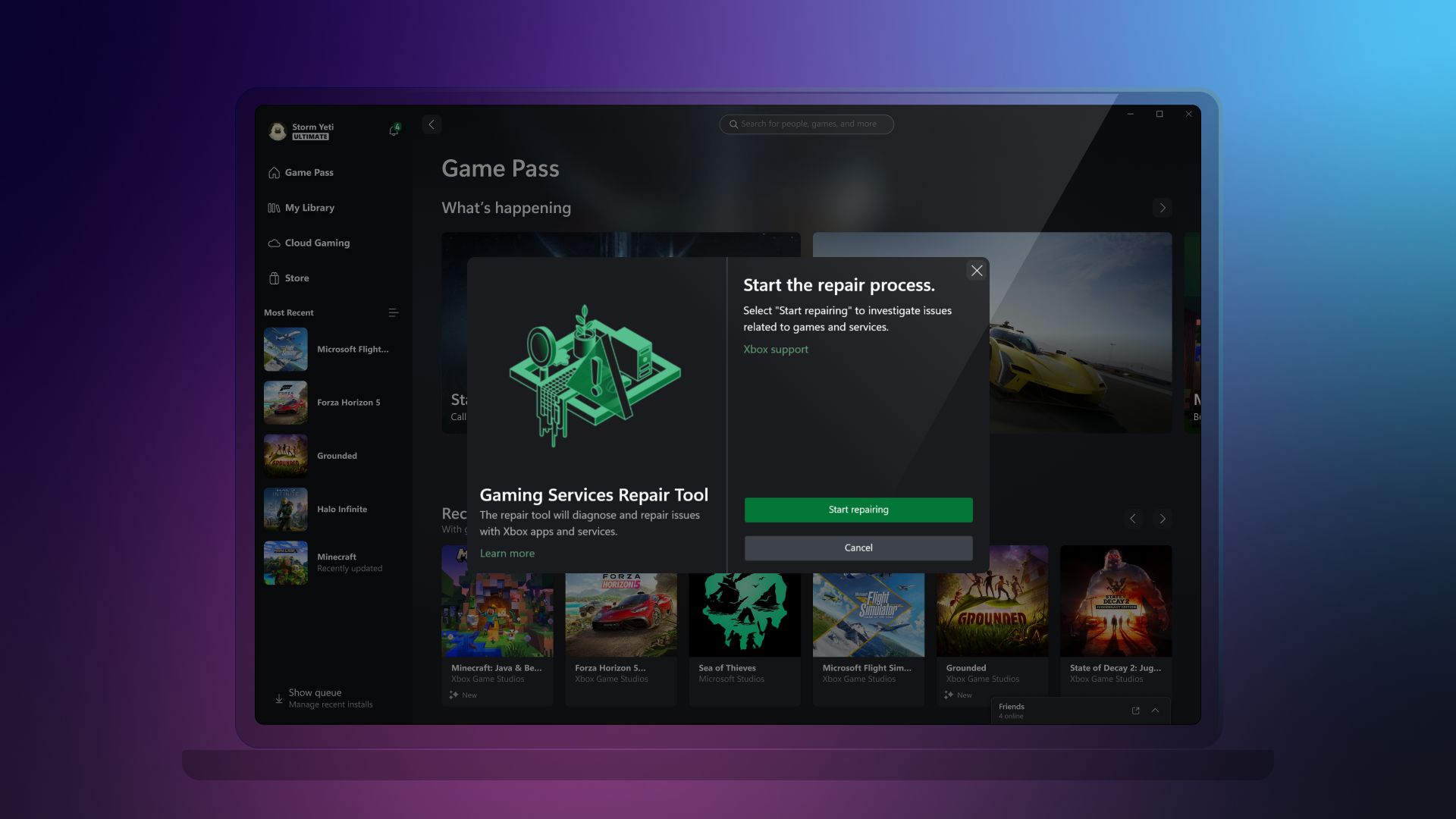 This update also introduced the Gaming Services Repair Tool, which might be useful for diagnosing and troubleshooting. This tool addresses any issues with Gaming Services or missing content when starting the Xbox app on PC. To access this feature, go to your profile in the app's top-left corner and select “Support”.
