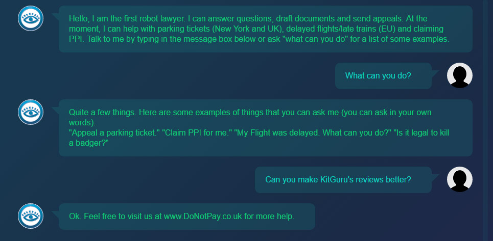 Challenging parking tickets, reclaiming PPI, demanding compensation for delayed or cancelled flights – all of these things can be time consuming and bothersome to sort out. The Do Not Pay bot is designed to make it easier. It isn't the smartest tool in the shed, but if you answer its questions it can create forms, make applications and ultimately save you time.