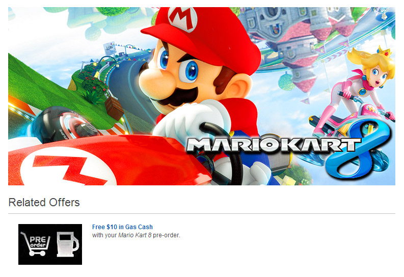 Anyone pre-ordering a copy of Mario Kart 8 on the Wii U at Best Buy in the next few weeks, will get a $10 coupon for petrol. While here that might not go very far, as Wii U Daily points out (in a depressingly lamenting fashion) that $10 “only” gets you a “few gallons.” Admittedly though with typical American vehicle fuel efficiency, that won't go as far as it might elsewhere.