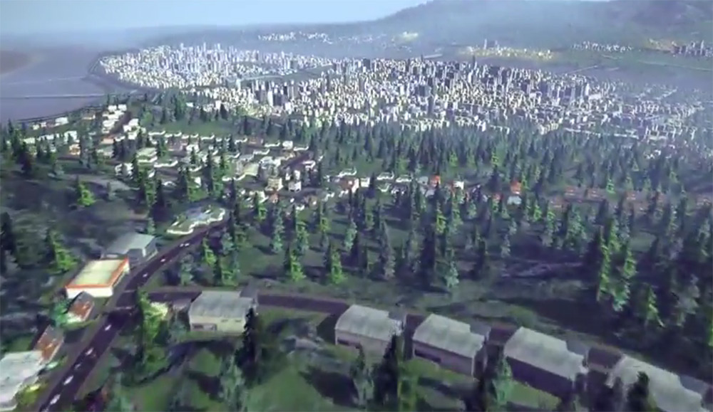 It's not in a direct way of course, that would be crass. Instead it simply highlights certain features that were points of contention for SimCity fans. “Play offline,” it says, “Mod and share online,” it says, all while showing you footage of simply enormous cities, which is perhaps another poke at SimCity, since its city limits were surprisingly small.