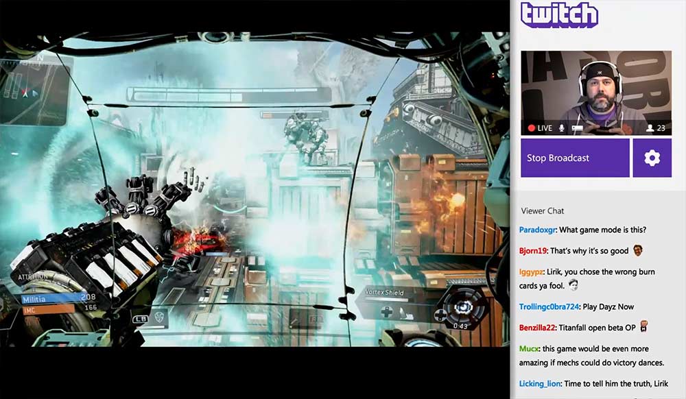 Clearly taking some inspiration from the ease at which the PS4 gets you sharing your gaming, the Xbox One can now be hooked up with Twitch and activated simply with the phrase “Xbox Broadcast,” and then confirmed by saying “start”. From there you're streaming and friends, family and fans can all tune in to watch you play.
