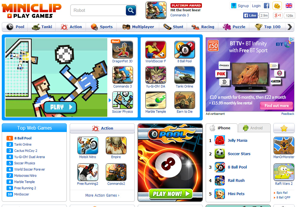 Miniclip also still brings in good traffic, with over 50 million visitors a month, and it retains the top spot in Google searches for the word “games,” in many parts of the world. Miniclip currently employs 140 individuals around the world and has published over 1,000 of its own games, many of which are now available on mobile phones. However, much of the site and the games themselves use older flash technology, so many may not be compatible with some handsets, especially Apple hardware.