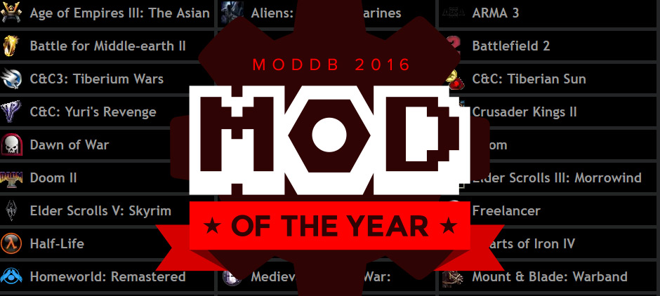 If you have a favourite mod of 2016, or if your choice last year didn't quite make the grade and is still going strong, ModDB wants to hear about it. As it has every year for the past decade and a half, ModDB is looking to crown its Mod of the year 2016, with 100 of the top contenders from a number of games, new and old alike, now available to vote on.