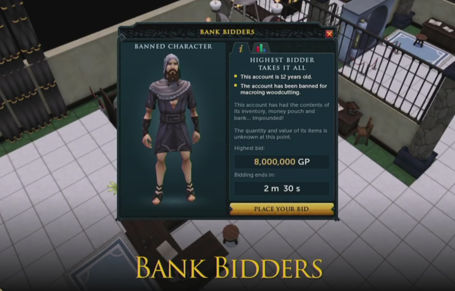 Although players banned from most games usually see their time invested simply wasted as their character and assets are locked away forever, Jagex, the developer of Runescape has another idea. It's going to anonymously auction off the account bank balances and item inventories, giving people a chance to unlock everything for a price.