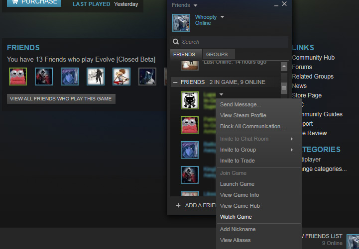 Whatever you want to do, it's very simple to set up. Be part of the Steam beta club – where all the cool kids hang out – and open up your friends list. Right click on the pal who's shoulder you want to digitally look over and click the “Watch Game,” option. From there, the person you're trying to leer over will receive a notification asking permission to begin spectating your game. If you accept, they jump right in and get your view of the game in action.