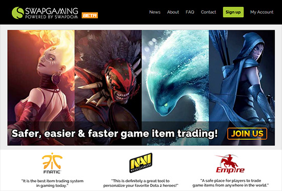“SwapGaming is an in-game item trading system that is powered by Swapdom Inc. and links to your Valve's Steam account,” reads the company site. “There is no need to find each other online, no negotiation, and no checking of others’ reputations in order to make trades.”