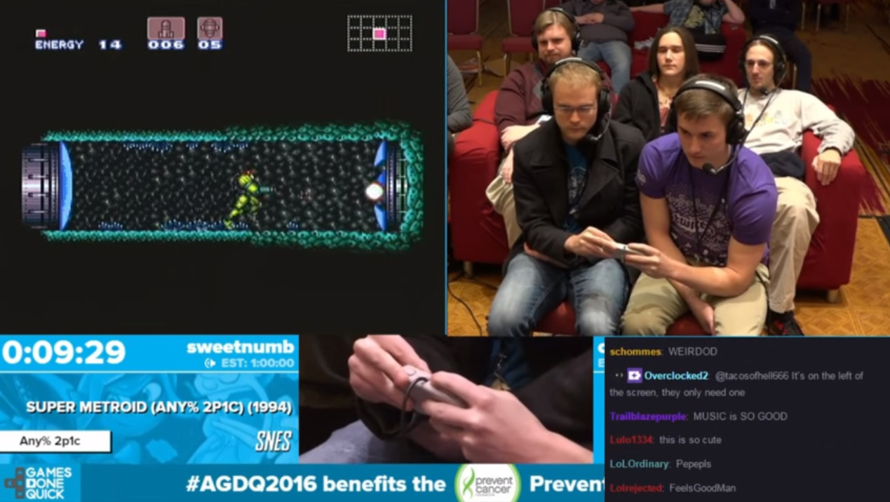 Taking place this year's Awesome Games Done Quick speed-run event, the two players in question not only played Super Metroid while one operated the DPad and the other the face buttons, but managed to beat the game in its entirety (thanks Kotaku).