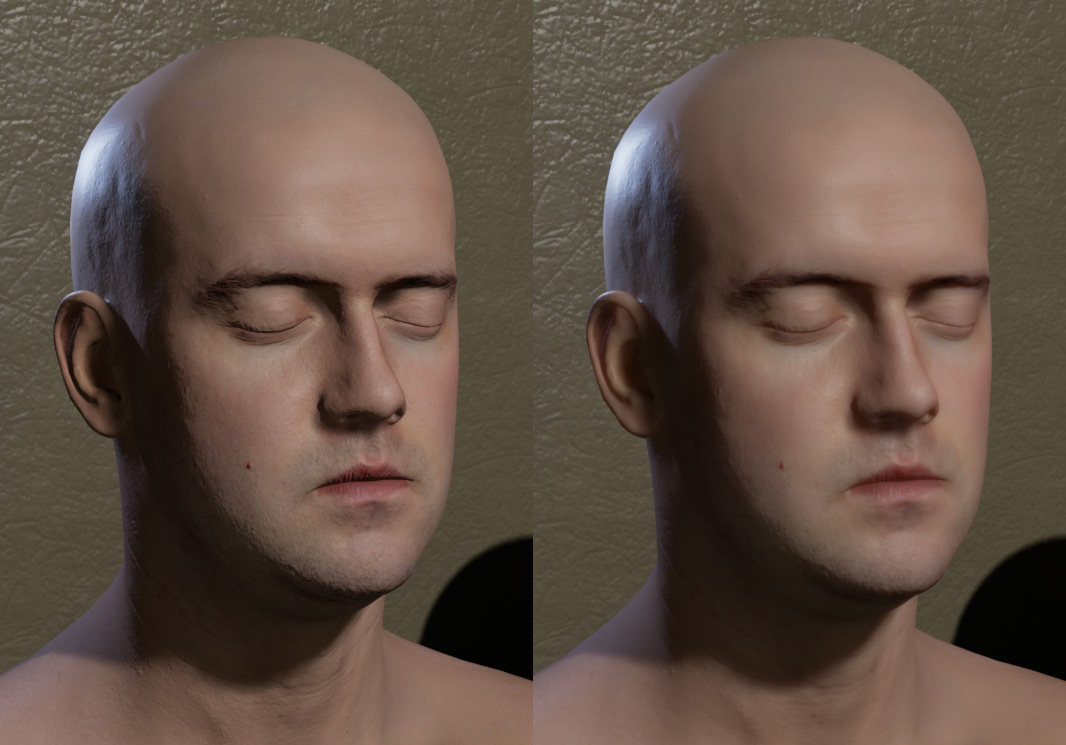 Left: No subsurface scattering Right: Epic's new technique.