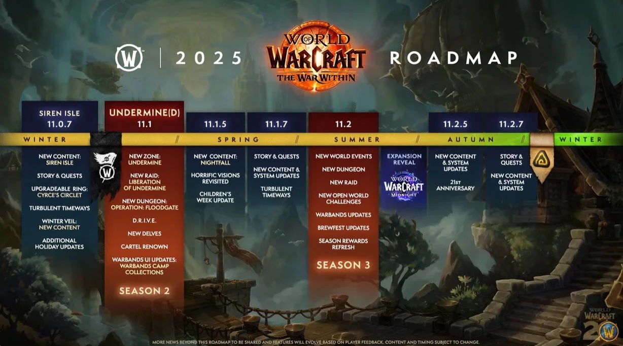As you can see in the image above, Blizzard has also shown its new roadmap for 2025, which confirms that the team plans to officially reveal the World of Warcraft: Midnight expansion next summer. The new expansion is part of a trilogy known as the Worldsoul Saga, which kicked off with last year's release of The War Within.