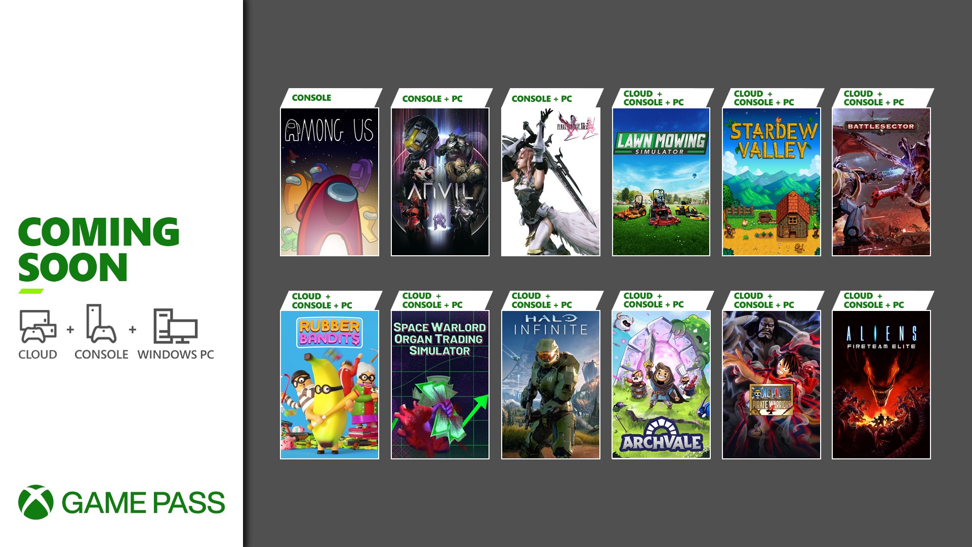 On the 2nd of December, ANVIL, Archvale, Final Fantasy 13-2, Lawn Mowing Simulator, Rubber Bandits, Stardew Valley and Warhammer 40,000: Battlesector will be added to Xbox Game Pass, followed by Space Warlord Organ Trading Simulator and Halo Infinite on the 7th and 8th of December. On the 9th of December, Manga fans can dive into One Piece Pirate Warriors 4 and finally, on the 14th of December, Among Us (console) and Aliens: Fireteam Elite will also be added. With the exception of Among Us, all other games listed here are coming to Game Pass on console and PC.