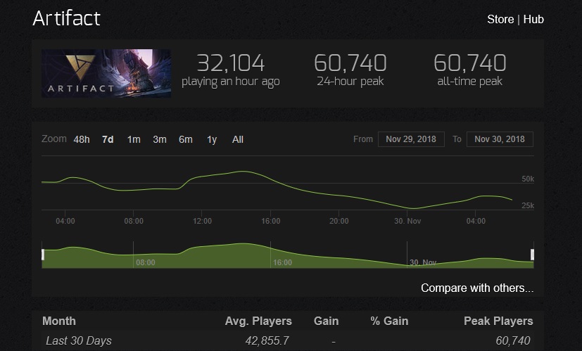 It will be interesting to see how Artifact's numbers hold up over the next few months. Typically, Valve games do very well and have a long life-span, but there are plenty of critics when it comes to Artifact and a card game like this could end up being niche in the long run.