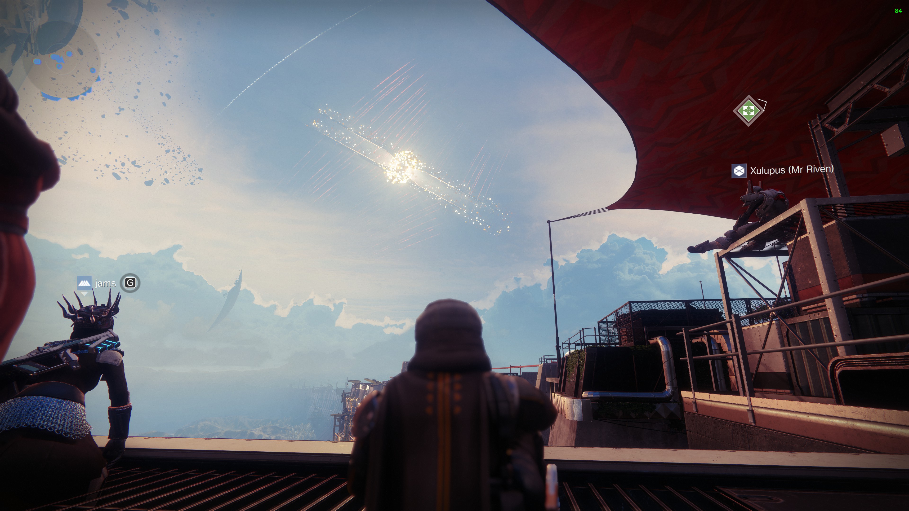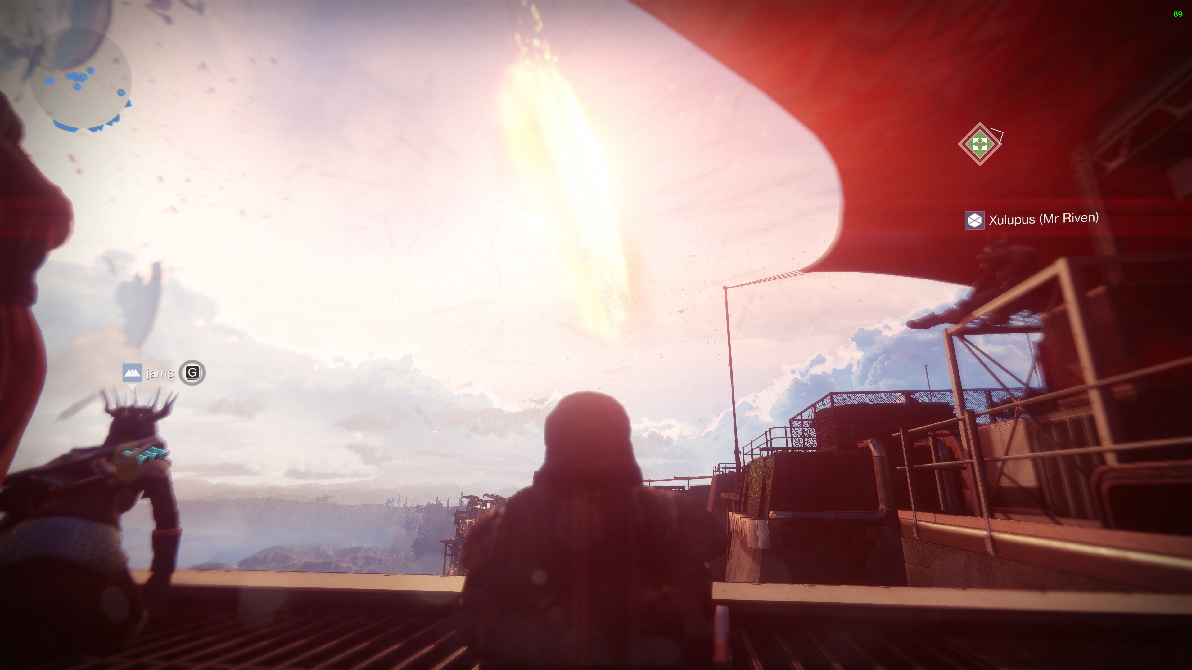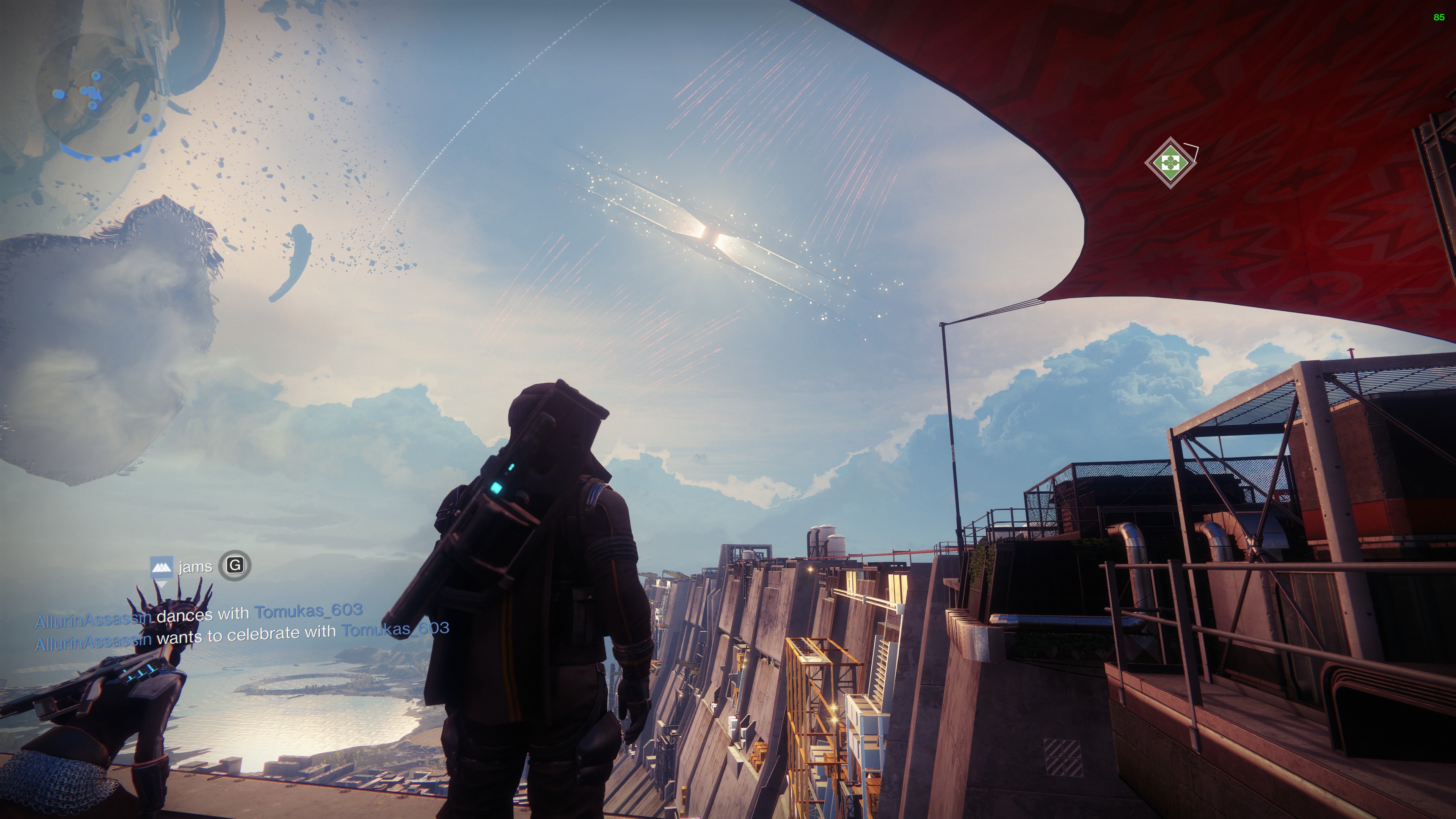 You can see screenshots from during the event above. The projectiles started inching closer towards The Almighty at around 6:15PM BST, it then took another 75 minutes for the ship to start fully detonating and then crashing towards Earth, narrowly missing The Tower on its way down.