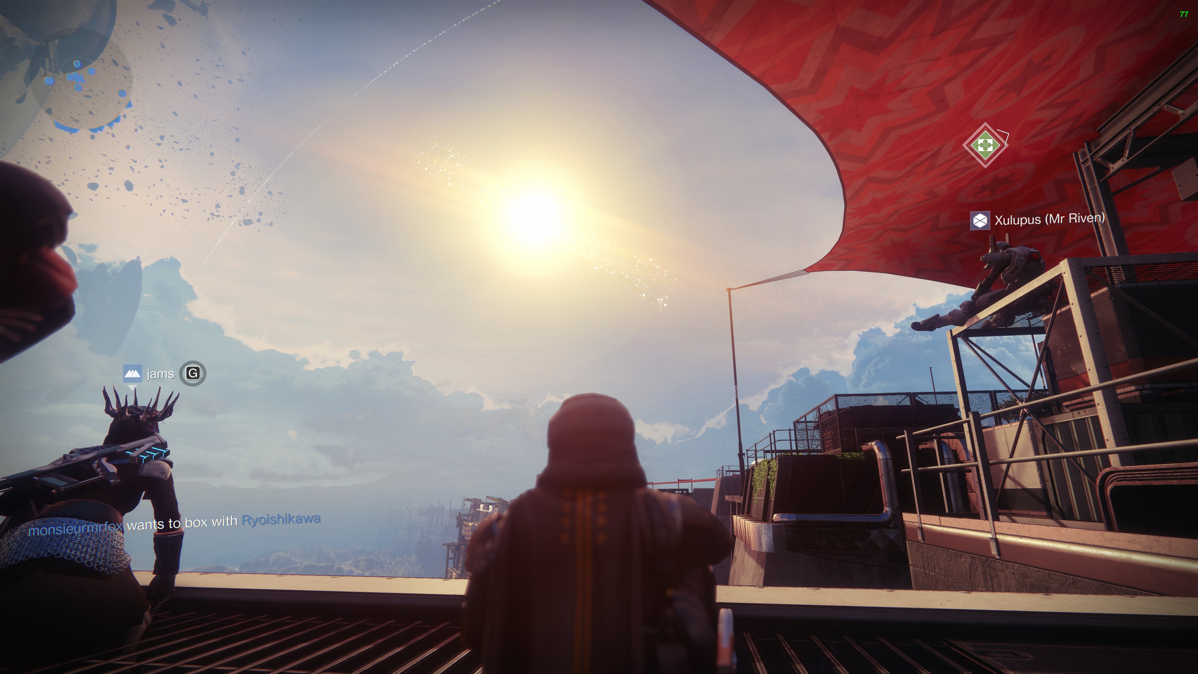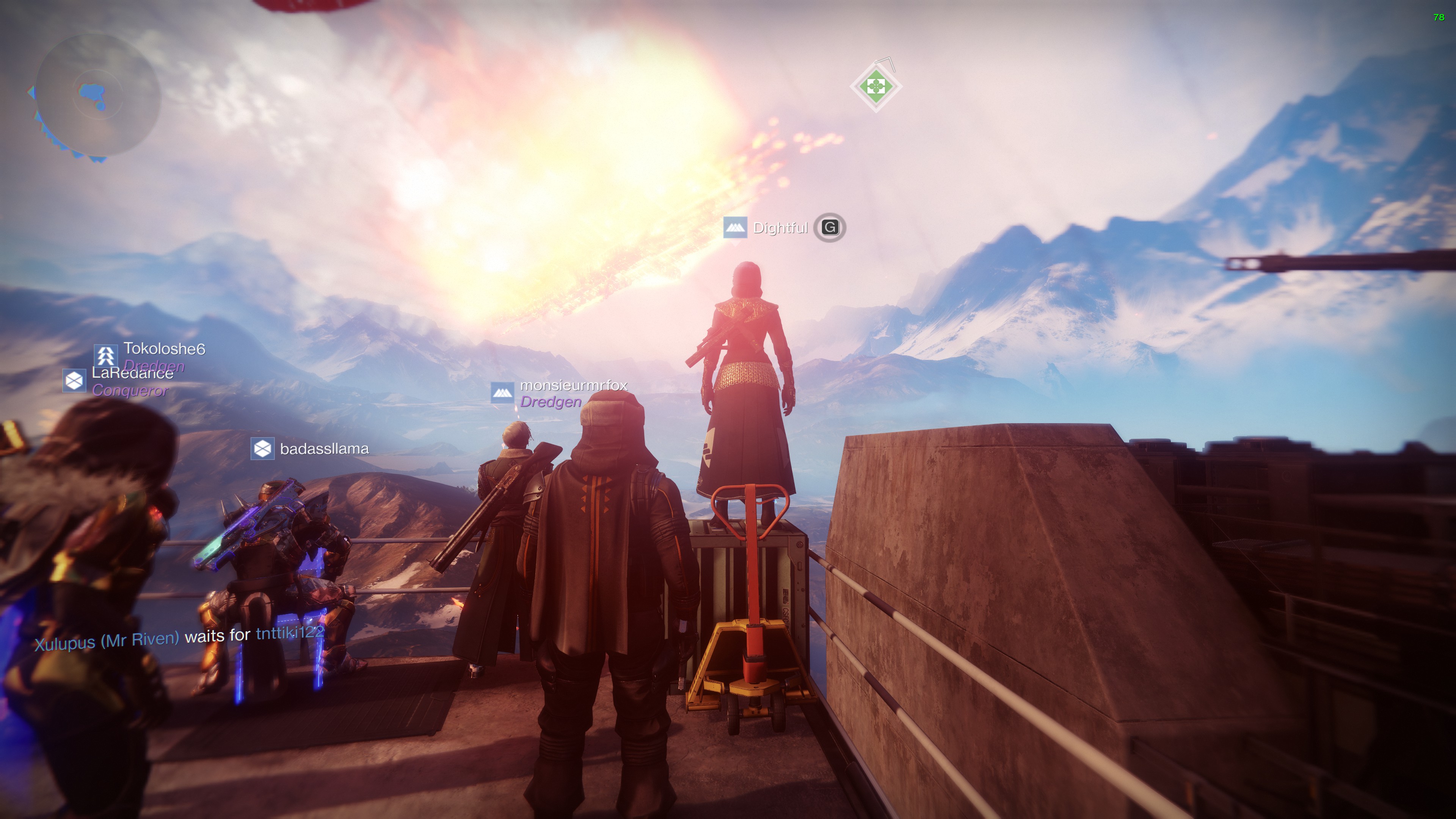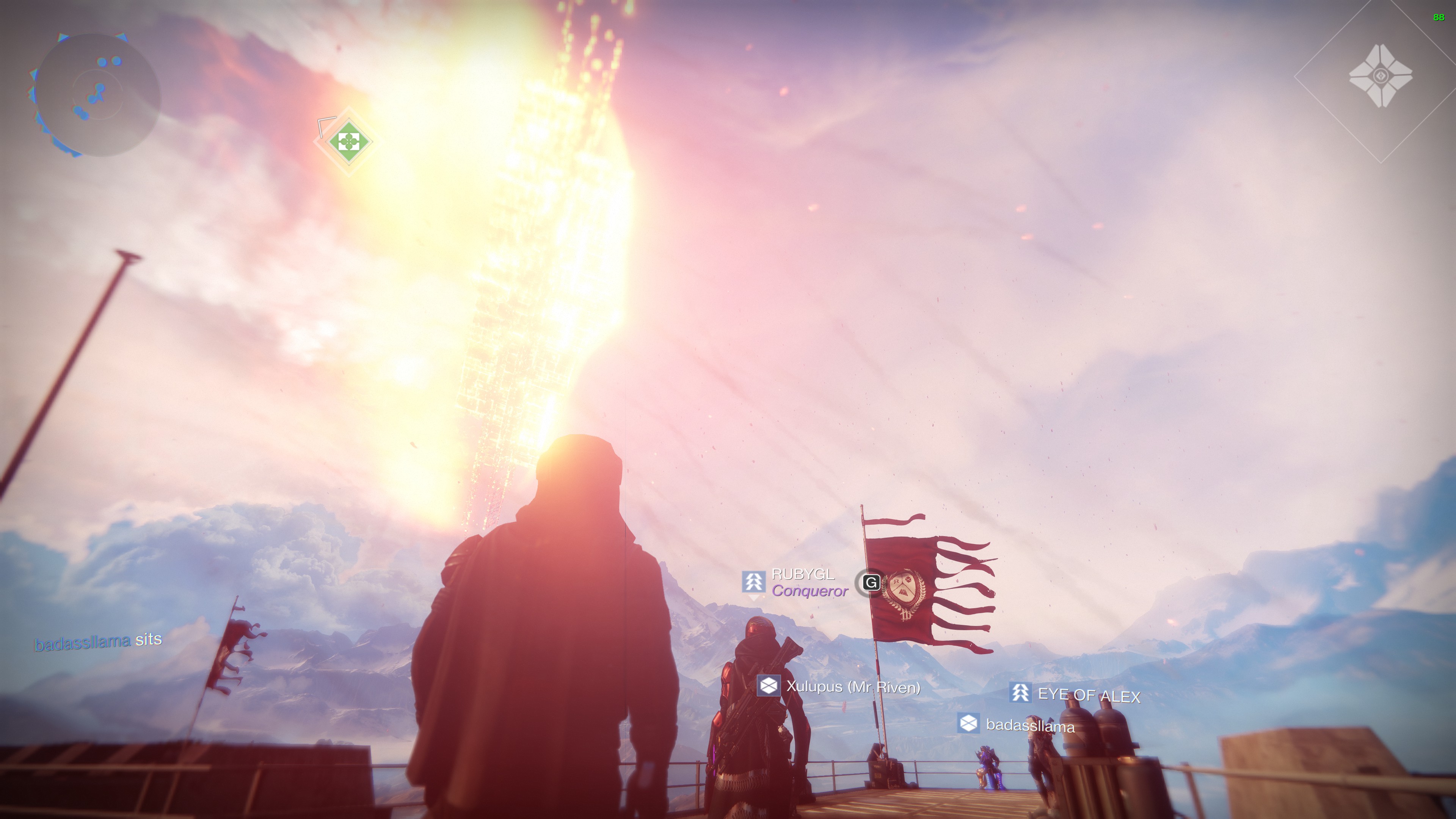 You can see screenshots from during the event above. The projectiles started inching closer towards The Almighty at around 6:15PM BST, it then took another 75 minutes for the ship to start fully detonating and then crashing towards Earth, narrowly missing The Tower on its way down.