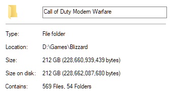 The game's install size will vary a little, I have seen some reporting their folders sitting at 201GB, while my own install of Modern Warfare is currently 212GB.