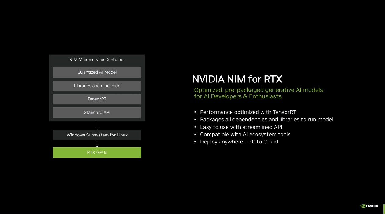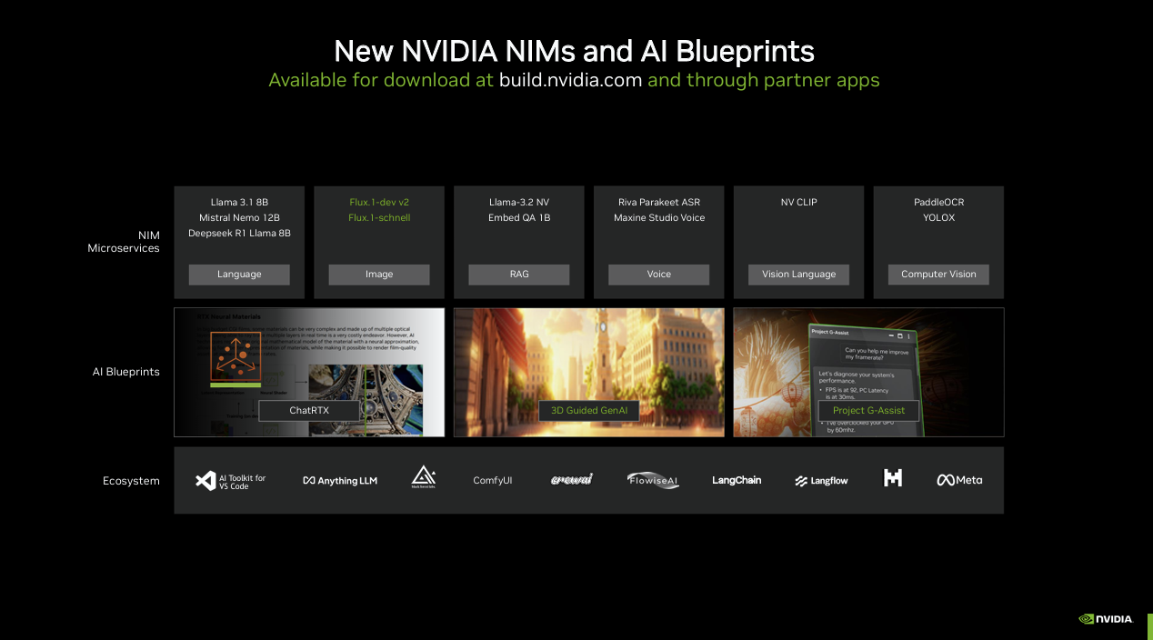 The new NIM for RTX container will further aid development efforts, with pre-packaged generative AI models, optimised for TensorRT. NIMs and AI blueprints will be available to download via Nvidia's own website, as well as through partners.