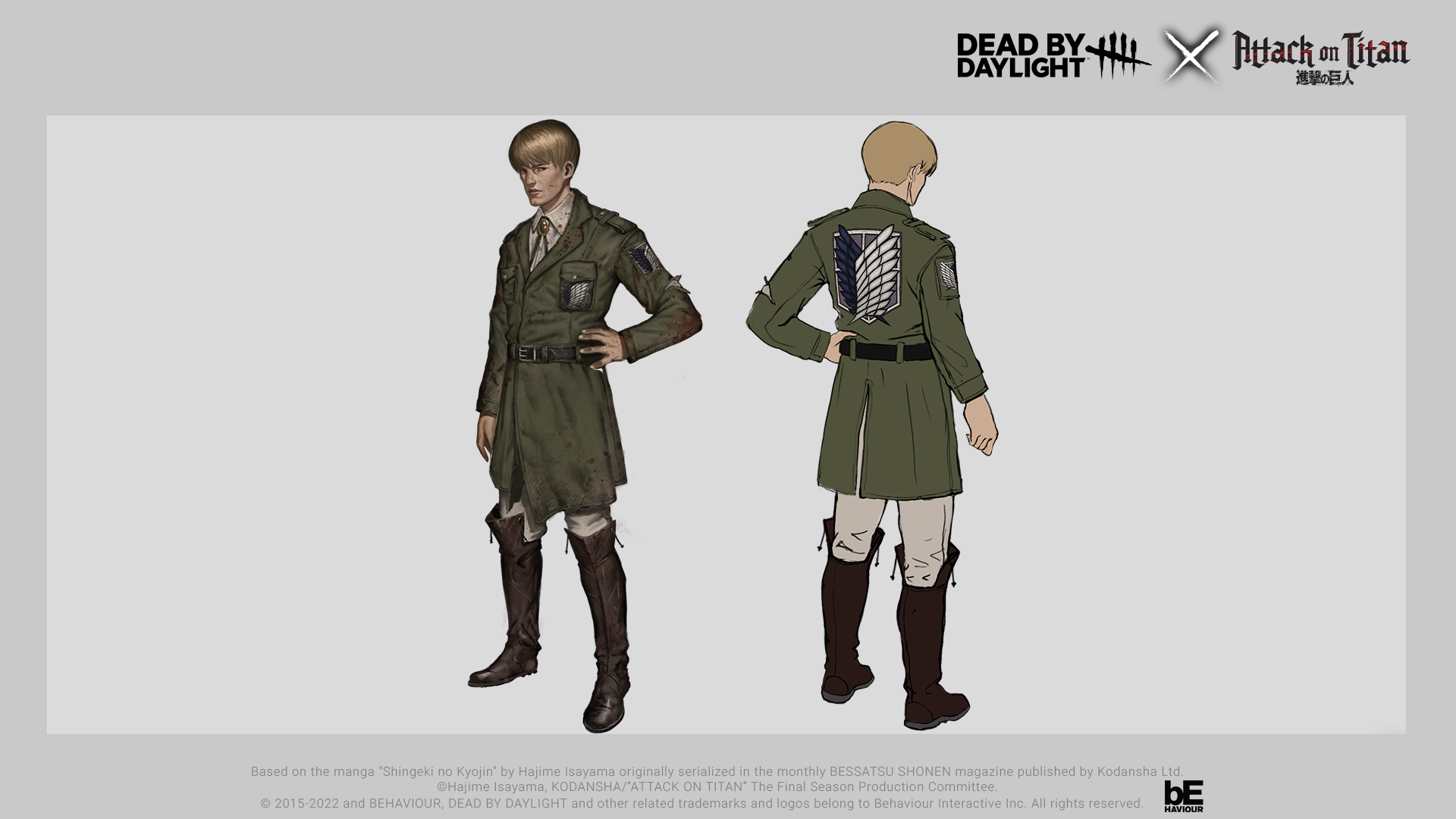 Back in May, the team behind Dead by Daylight teased an upcoming Attack on Titan crossover. At the time, we received some teaser images, but we did not get full details. Now, the crossover is finally going live, bringing ten new AoT-inspired outfits to the game.