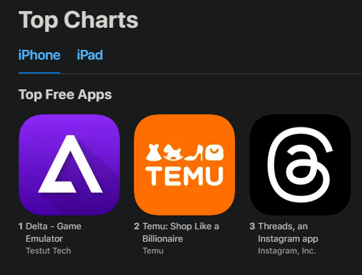 The Delta emulator is currently the top downloaded free app on the App Store for iPhone. The emulator has been downloadable for several days at this point and has a near perfect rating across over 9000 reviews.