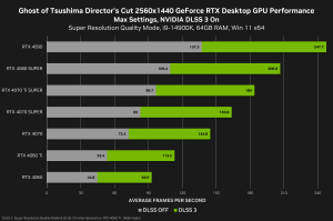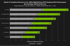 According to Nvidia's testing, the RTX 4090 is capable of running Ghost of Tsushima at max settings, at 4K resolution at 84FPS before DLSS. If you switch on DLSS 3, you'll get over 200 frames per second. The RTX 4080 Super and RTX 4070/Ti Super graphics cards aren't too far behind, offering 165FPS, 143FPS and 125FPS, respectively, with DLSS 3 at 4K.