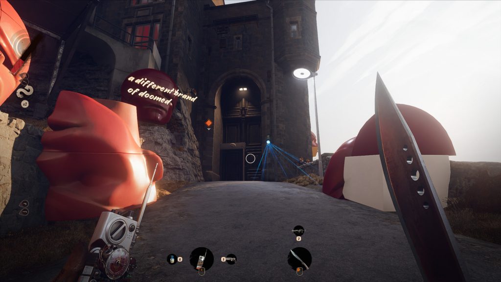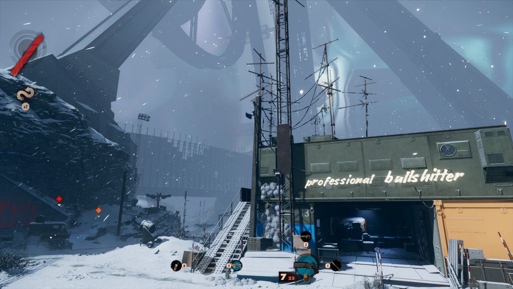 Right from the get go, Deathloop is oozing with style, personality and humour. The game opens with a mysterious assassin murdering our main character, only to wake up on a beach moments later with strange strings of text appearing near rocky surfaces and walls. We speak to Julianna, the assassin that just killed us, she is toying with us and at the same time, she is frustrated by our lack of knowledge, so she drops some clues so that we can start piecing this puzzle together.