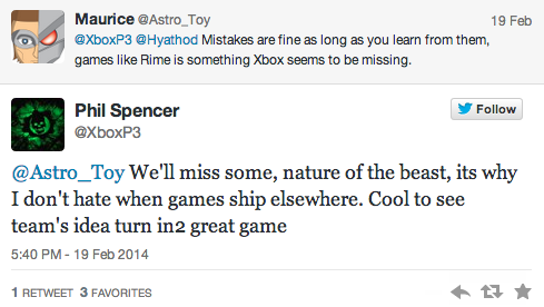 Some leaked documents obtained by VG Leaks reveal that Rime developer, Tequila Works, originally pitched the game to Microsoft under the working title, Echoes of Siren. Microsoft passed on the game but has since implied that this was a mistake.