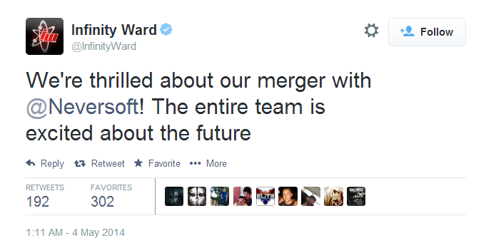 The news was announced through a recently sent memo written by Activision CEO of Publishing, Eric Hirshberg: “As you know, Neversoft and Infinity Ward teamed up for the development of Call of Duty: Ghosts. And through that process, it became clear that the two studios have very complementary skill sets. Between these two excellent studios, it seemed like a single ‘super-studio' could emerge.”