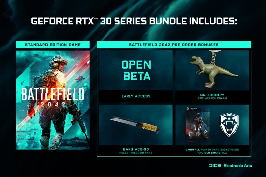 So if you're buying a pre-built desktop or laptop equipped with a qualifying RTX 3090, RTX 3080 Ti, RTX 3080, RTX 3070 Ti or RTX 3070 GPU, you will also get a copy of Battlefield 2042 Standard Edition, as well as the accompanying pre-order bonuses, such as early open beta access.