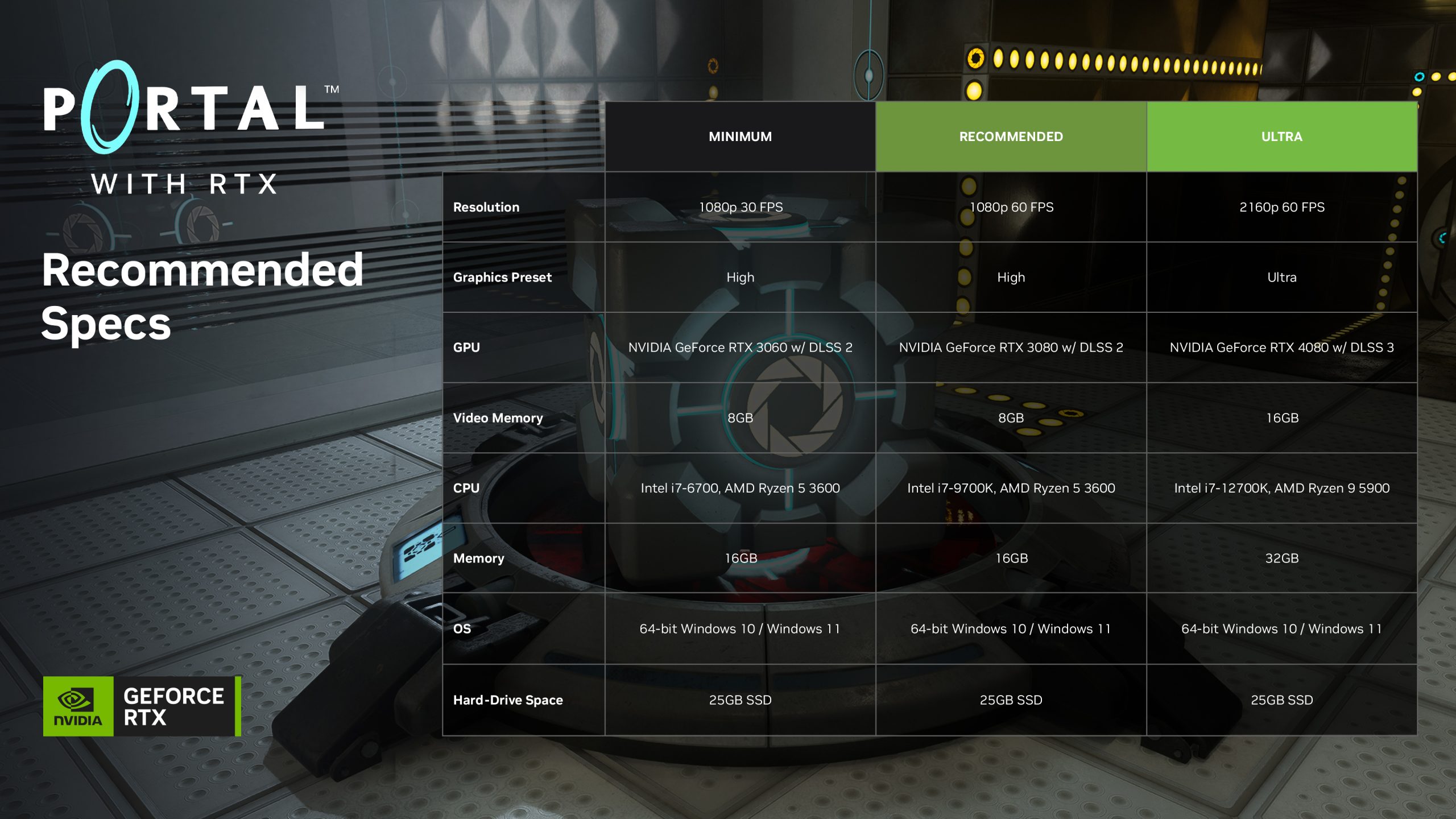 Nvidia Lightspeed Studios used its own Omniverse tools to create Portal RTX. This won't be a separate version of the game, but it will instead be made available as a free DLC for all owners of the original game on the 8th of December. The new RTX version offers enhanced visuals and ray-tracing, in addition to DLSS 3, so owners of the new RTX 40 series GPUs will get the most out of this game, but those on older RTX cards will still benefit from ray-traced visuals and DLSS 2.