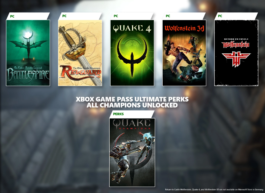 In an update for QuakeCon, Bethesda is bringing five more of its classic games to Xbox Game Pass for PC. The line-up includes The Elder Scrolls Adventures: Redguard, An Elder Scrolls Legend: Battlespire, Wolfenstein 3D, Quake 4 and Quake Champions.