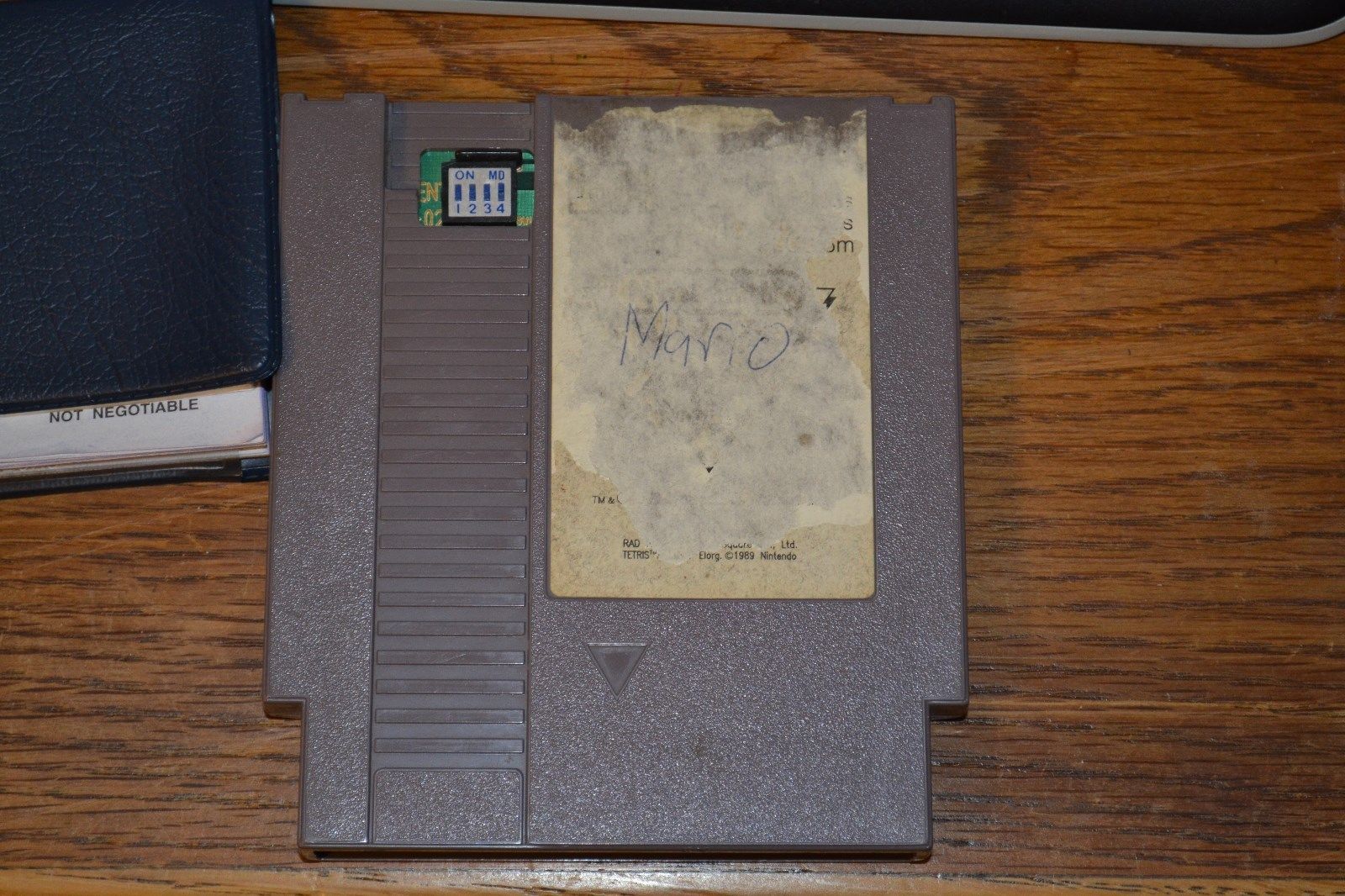 The label of the cartridge is gone and has been replaced by an old bit of paper with the word Mario written on it, which the seller admits is unfortunate: