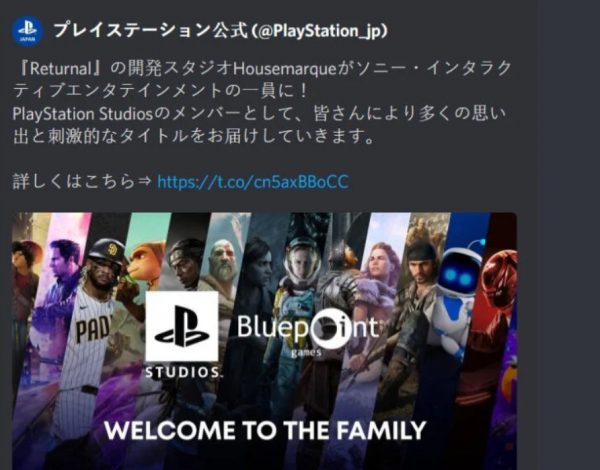 In a now deleted tweet, PlayStation Japan tweeted out a “Welcome to the Family” image with Bluepoint Games' logo. The tweet was replaced with one containing the correct image announcing the Housemarque acquisition.