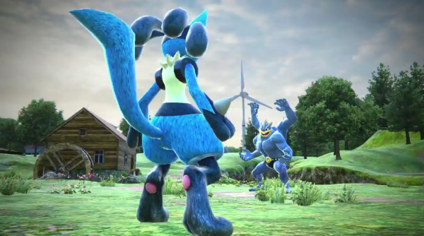 The game looks how you would expect it to with 3D character models battling on a 2D plane. While we haven't seen any real gameplay yet we do have a nice looking trailer featuring Lucario battling it out with Machamp: [yframe url='http://www.youtube.com/watch?v=p7Cs4L1JALY']