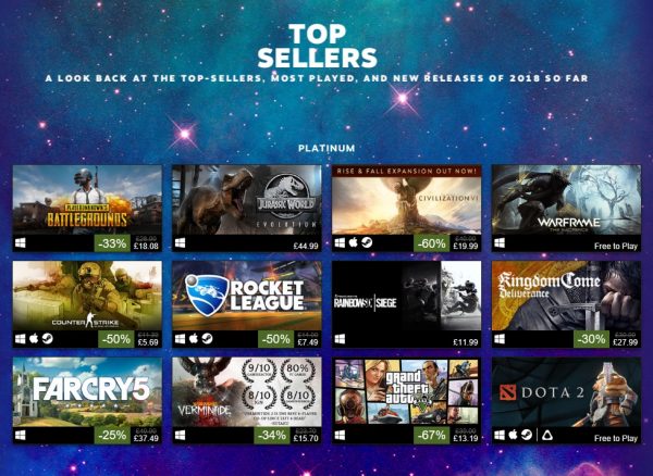 The Steam Summer Sale will be coming to a close shortly, but first, Valve is taking the opportunity to reveal the top selling games on Steam so far in 2018. As we saw in the 2017 bestsellers list, games are broken down into platinum, gold, silver and bronze categories. Perhaps unsurprisingly, Grand Theft Auto V and PUBG still sit in the upper echelon.