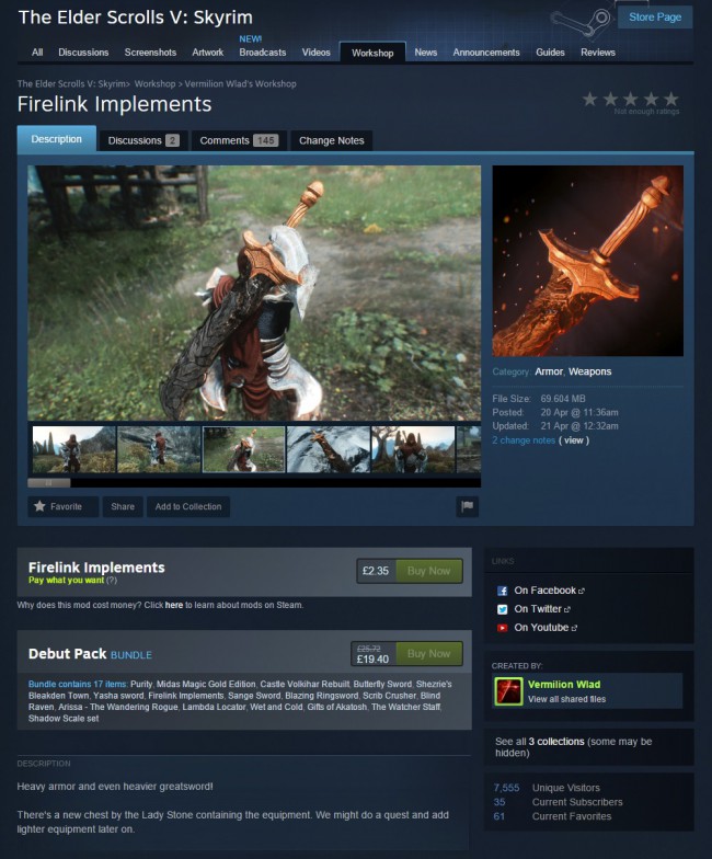 Good way Steam to kill of more of the playerbase! I for one won’t be paying for mods, I don’t mind donating but when you do this the original content normally gets stolen from the creator. I hate Steam, it has far to much monopoly over the market and is only here for DRM, it’s a decent platform but has far too much power, one day you could wake up, go onto the account to find it locked and nothing doing, you’ve just lost over £1000 of games.