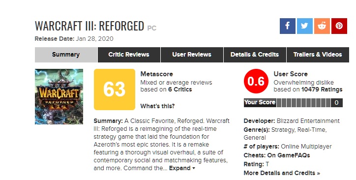 Earlier this week, Warcraft 3: Reforged officially launched and unfortunately, the final game did not live up to the ambitious ‘remake' that Blizzard originally pitched in 2018. The game has already been drawing criticism for downgrades and now, the re-release has the lowest overall ‘user score' rating on Metacritic.