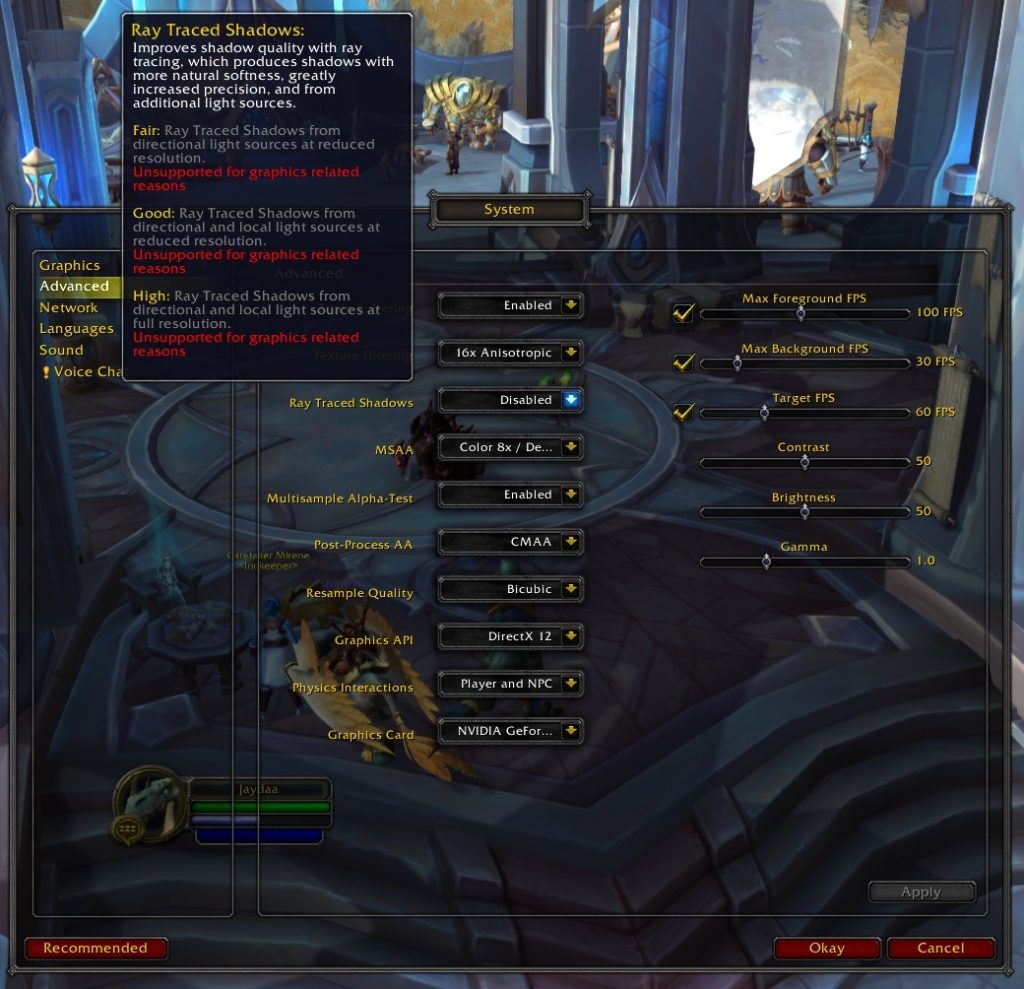 The World of Warcraft: Shadowlands expansion is currently in alpha and the latest update added a new ray-traced shadows option to the graphics menu with fair, good and high settings. Each setting adjusts the resolution of ray-traced shadows and local light sources.