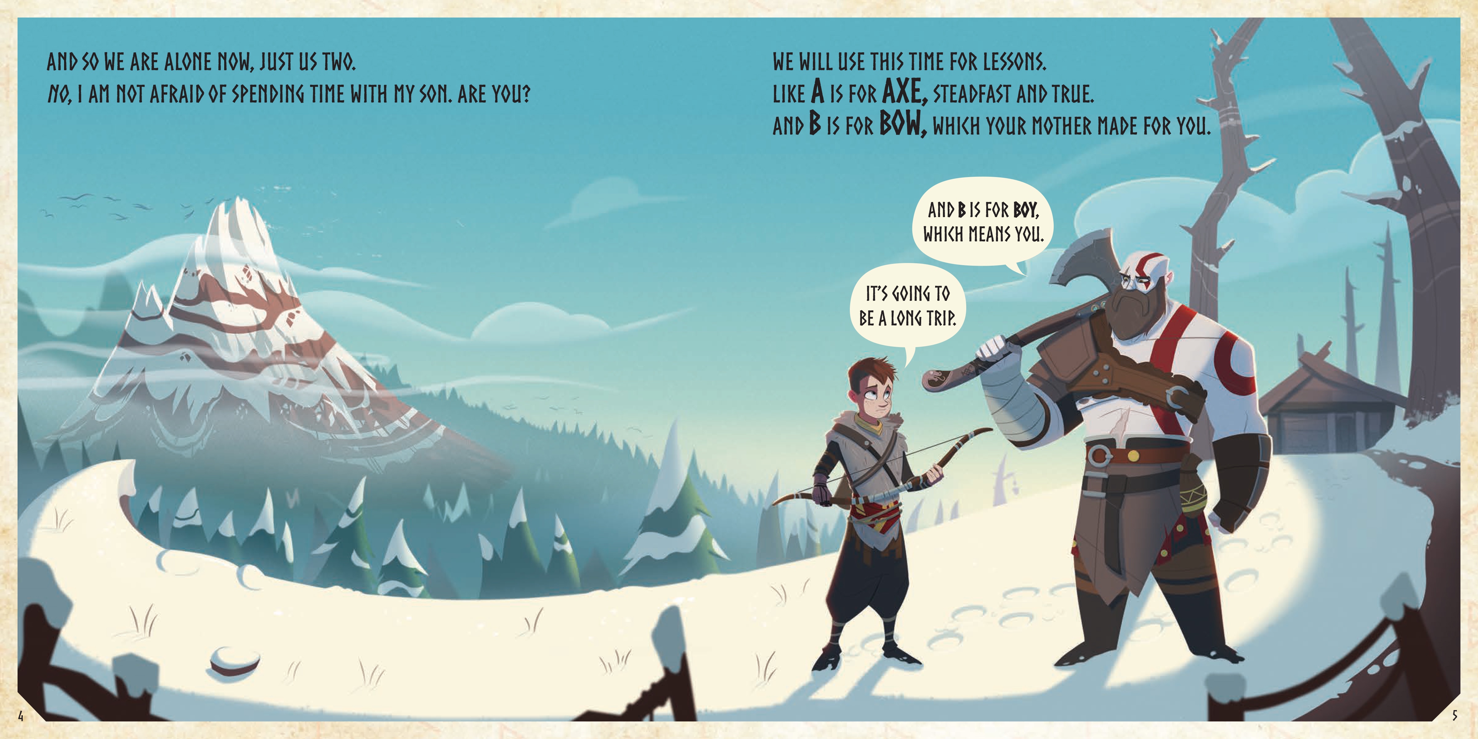 In an interview with Polygon, the book’s illustrator, Romina Tempest described B is for Boy as “an abridged version” of 2018’s God of War with “a few familiar items and characters [added] into the environments to allude to other aspects of the tale.”