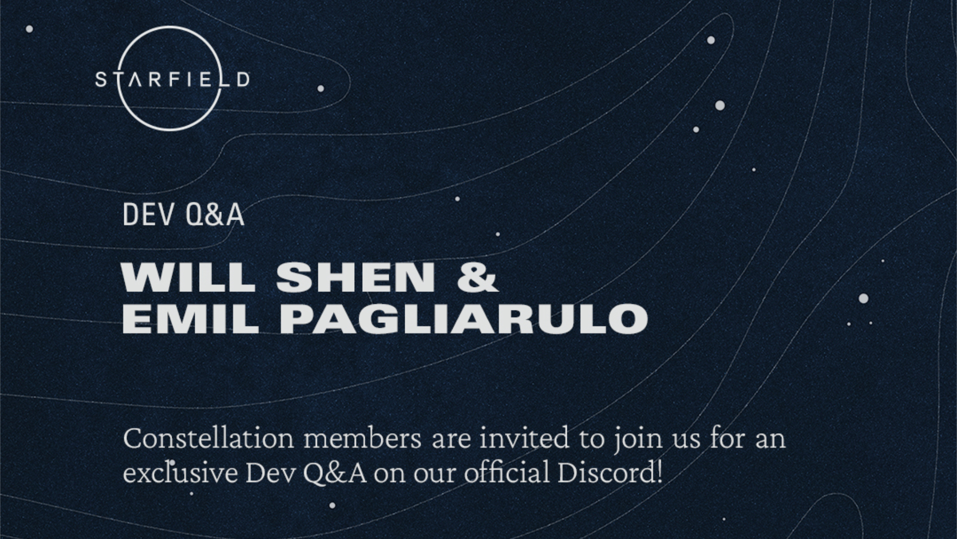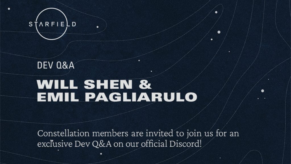 “One week from today – a Constellation exclusive Dev Q&A [will be taking place]!” adding that “Once you have access to the Constellation Discord channels, ask your #Starfield questions in the post in #constellation-questions by August 11 for a chance of having them answered!”