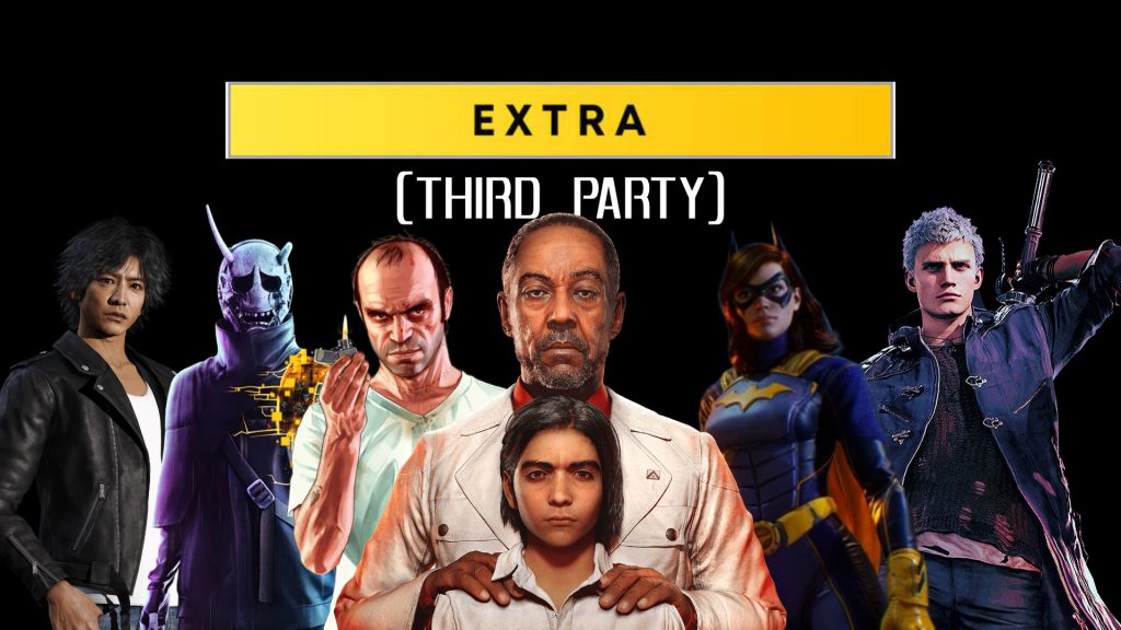 Other miscellaneous though notable 3rd party additions include Dragon Ball FighterZ; Devil May Cry 5: Special Edition; Tekken 7; Resident Evil 7: Biohazard; Ace Combat 7: Skies Unknown; Scarlet Nexus; Street Fighter V: Champion Edition; Immortals Fenyx Rising; Rune Factory 4: Special; Far Cry 6; SpongeBob SquarePants: Battle for Bikini Bottom – Rehydrated; World War Z; The Ascent; Sniper Elite 5; Lost Judgment; NieR Replicant ver.1.22474487139…; 13 Sentinels: Aegis Rim; Gotham Knights; Dragon's Dogma: Dark Arisen; Stranger of Paradise: Final Fantasy Origin; and Grand Theft Auto V.
