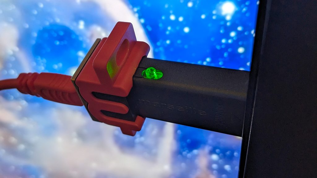 Unboxing your brand new mClassic, you’ll be greeted by a relatively small yet chunky stick which features a surprisingly rigid switch on its side to allow for the turning of processing to be on or off (alongside a 3rd ‘retro mode’ toggle). The upscaler has been amusingly designed to feature the brand’s logo within the shape of the device itself. Of course, with it set to be relegated to the back of your screen, aesthetics aren’t the most important thing here – though it is appreciated.