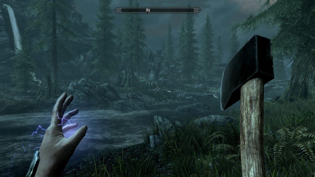 One solution which was perhaps popularised by Bethesda Game studios’ Skyrim is the use of a horizontal compass. Typically positioned in the top-middle of the screen, it offers most of the functions of the regular mini map while taking less space and being far less distracting – owing to its shape and position on the screen. Furthermore, with it being in essence a horizontal line, the compass helps you to know which direction you need to go, but not necessarily how far away it is; helping to bring back a bit of that sense of discovery.