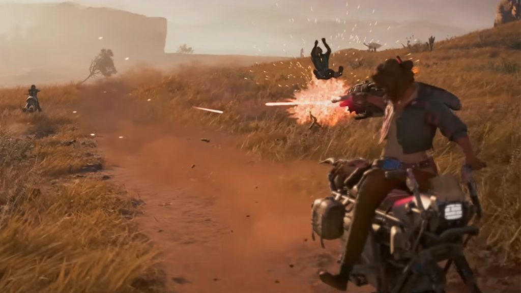 Once again, these seemingly small tweaks have an overall major impact on Outlaws’ ‘intended’ experience. Once a somewhat clunky and risky mode of traversal for escape, requiring a meter build up in order to fire at the enemies, Kay can now easily blast any adversaries around her at any time, all the while maintaining a greater sense of control of the speeder. This fundamentally changes the way that a player will interact with the world around them.