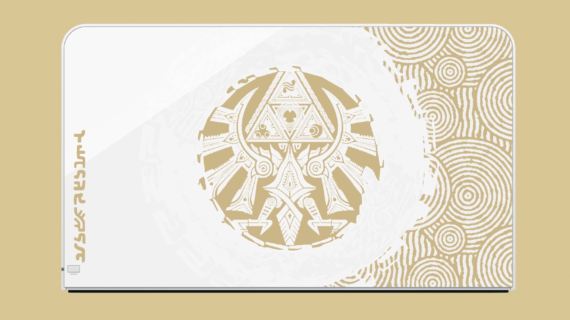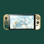 As with many Zelda consoles, this OLED Switch features a great deal of gold in its colouring alongside a complimentary white secondary pattern and colour. Interestingly, the left Joy-Con seems to be corrupted in the same way as Link’s arm – as we have seen from various trailers released so far.