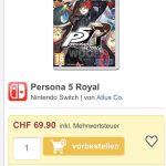 Going to the linked page for the Switch version of Persona 5 Royal now says “Produkt nicht gefunden [Product not found],” again, lending to its legitimacy.
