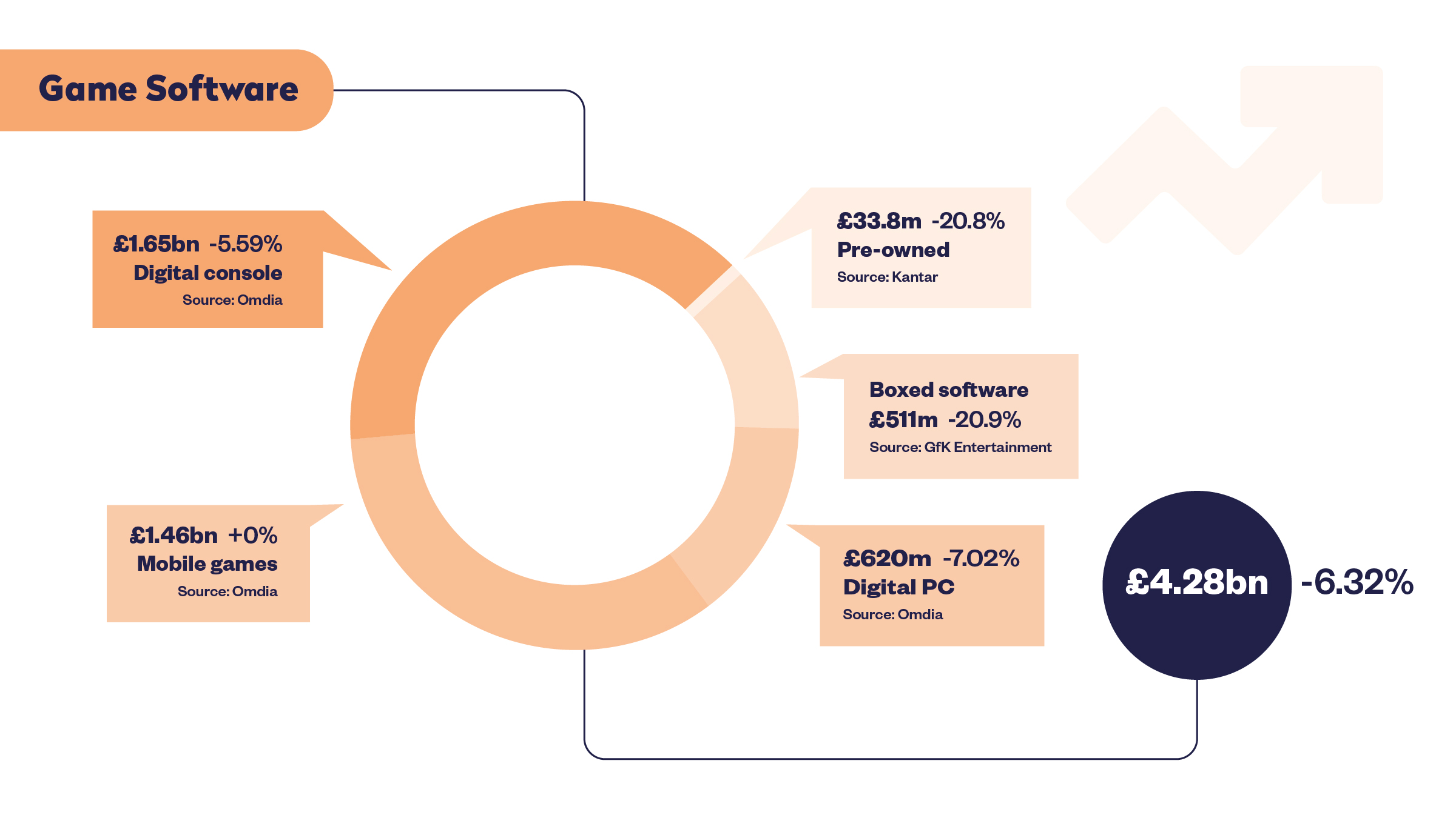 The software side showed regressive sales figures, but only by 6.32% and still remained far above pre-2020 numbers with £4.28 Billion in revenue. While likely to be due partially to the easing of lockdown rules, allowing more people to go outside thereby spending less time gaming, it is also possible that this drop can be attributed to launch software for new consoles typically being less ambitious or exciting than later games. Undoubtedly the hardware shortages also factored into the softer sales of video game software.
